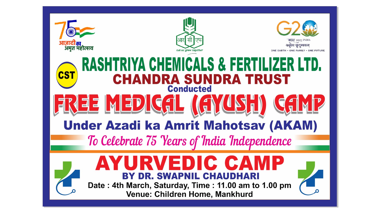 Ayush mega Health CSR activities done in collaboration with Rastriya chemical and fertilizer Navaratna company Government of India